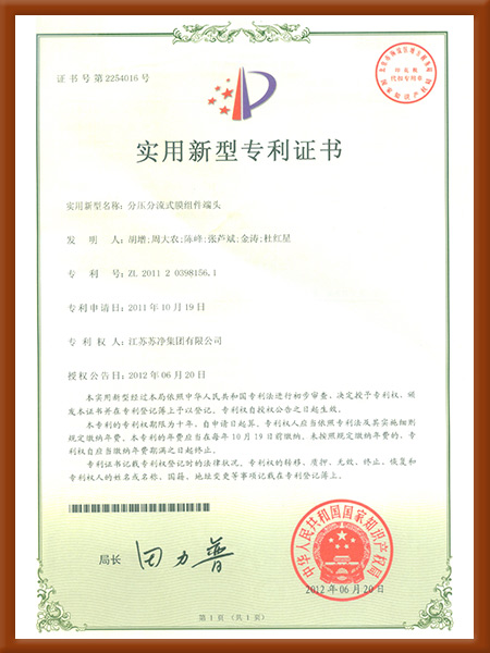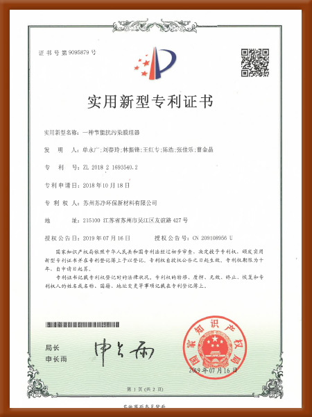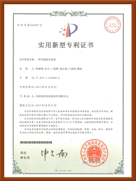 實用新型-2018一種柱式MBR膜組架-專利證書